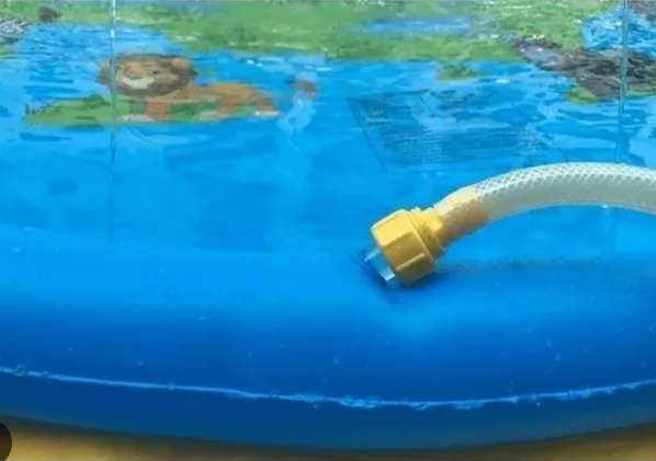 Se conecta fácilmente a una manguera de agua. Al abrir la llave, los chorros comienzan a rociar hacia el centro, creando una zona de juego refrescante.